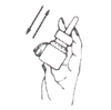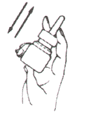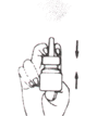 鼻孔内に噴霧器をまっすぐ立てていれ、鼻を軽くすいながら両側の鼻孔に1回ずつ噴霧します。噴霧する反対の鼻孔は指でふさいでください。 |